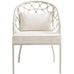 Rattan is woven into a series of circles, creating a soothing pattern in the Pebble Dining Chair. The chair also features an upholstered seat and kidney pillow for added comfort and style.