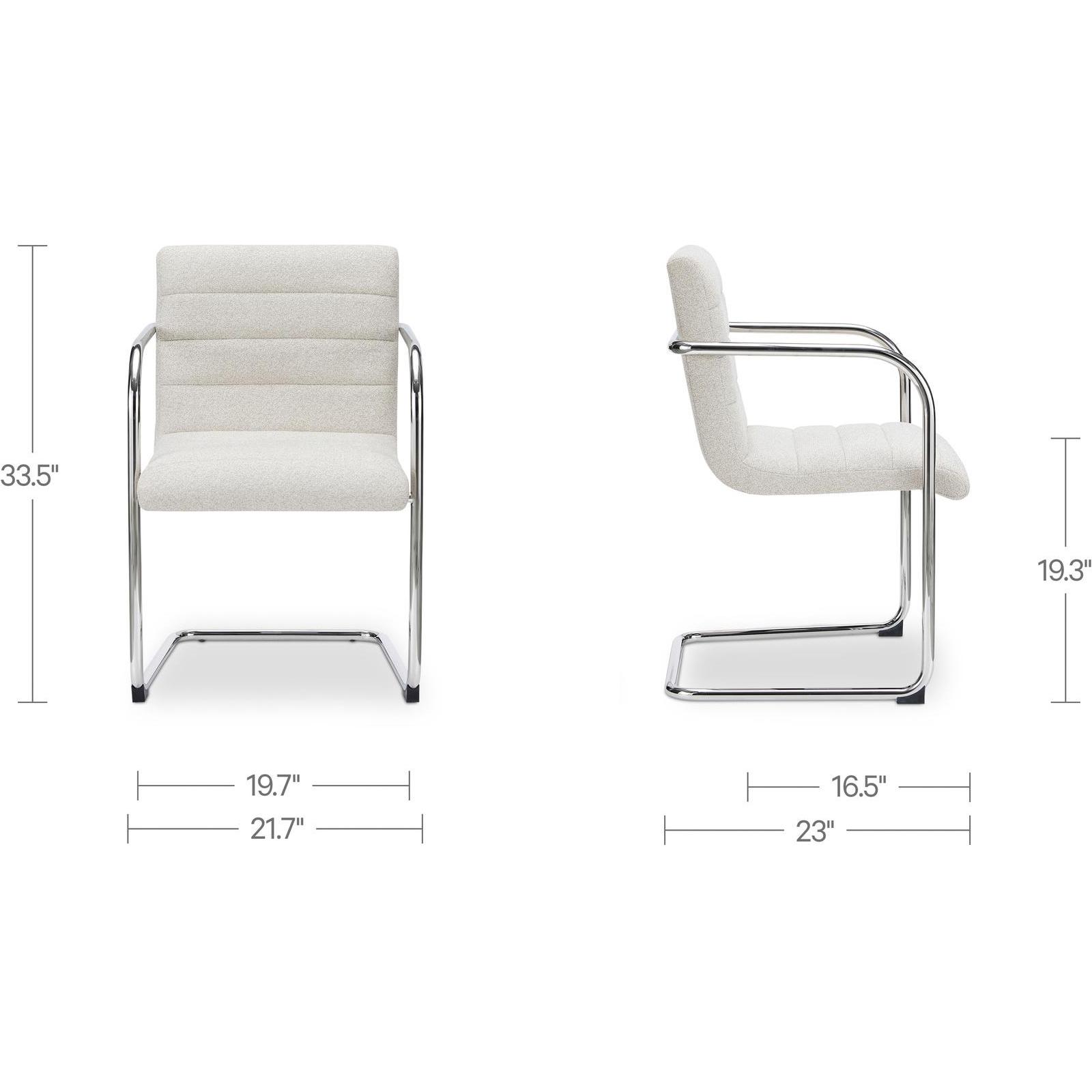 Sleek cantilever stainless steel frames create an illusion of weightlessness, contrasting beautifully with easy-to-clean performance fabric upholstery in the Pedro dining chair. Durable and made to be lived in, the generous seat and back cocoon in comfort.