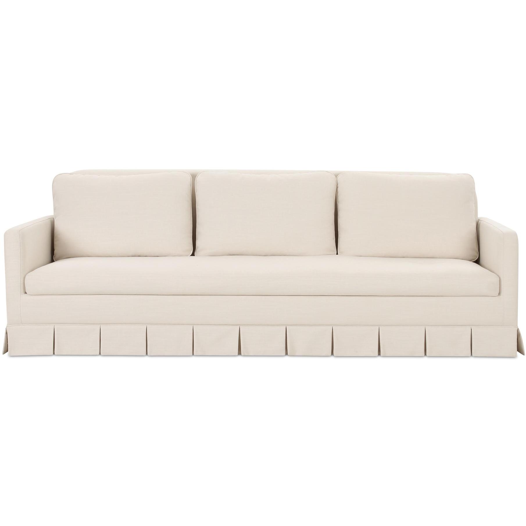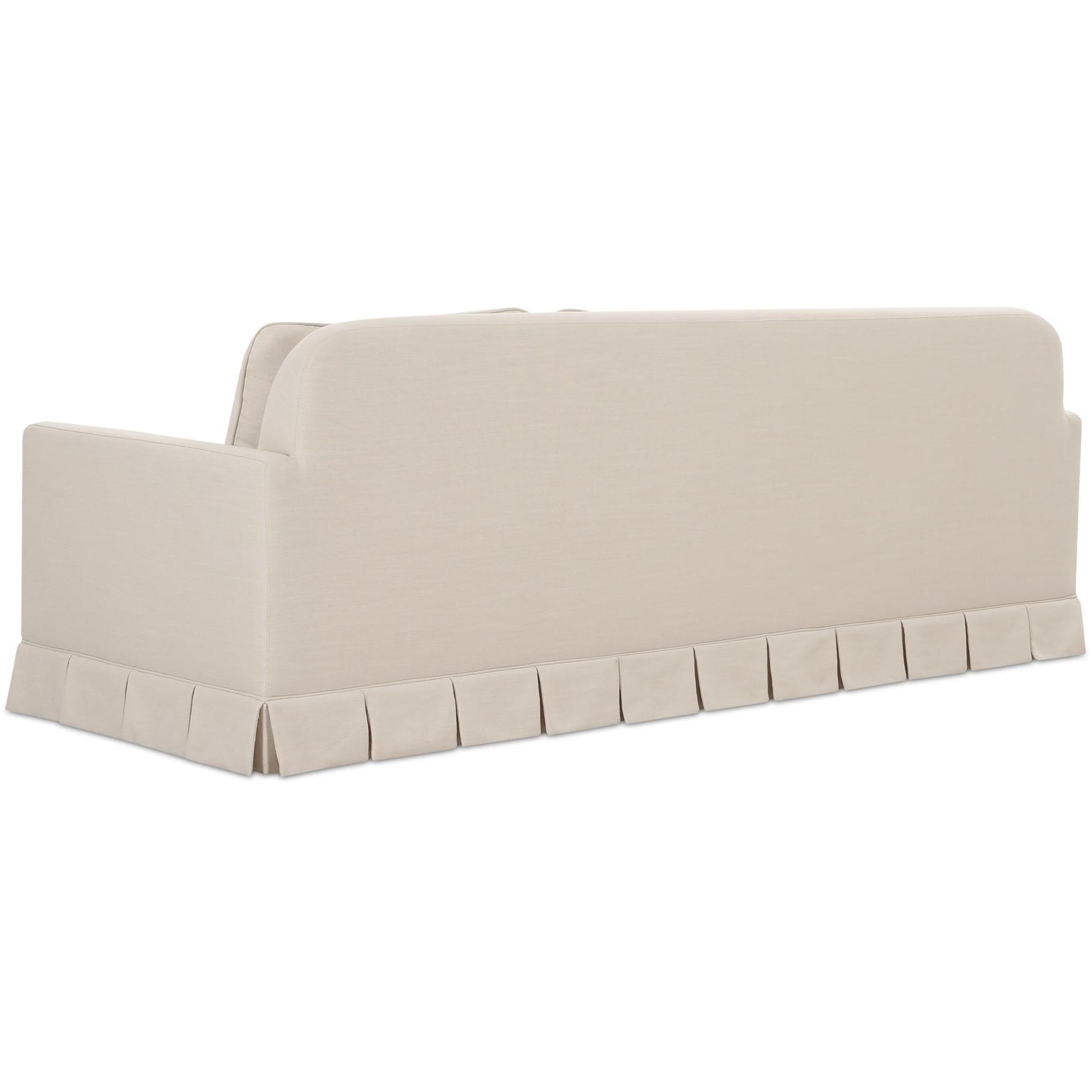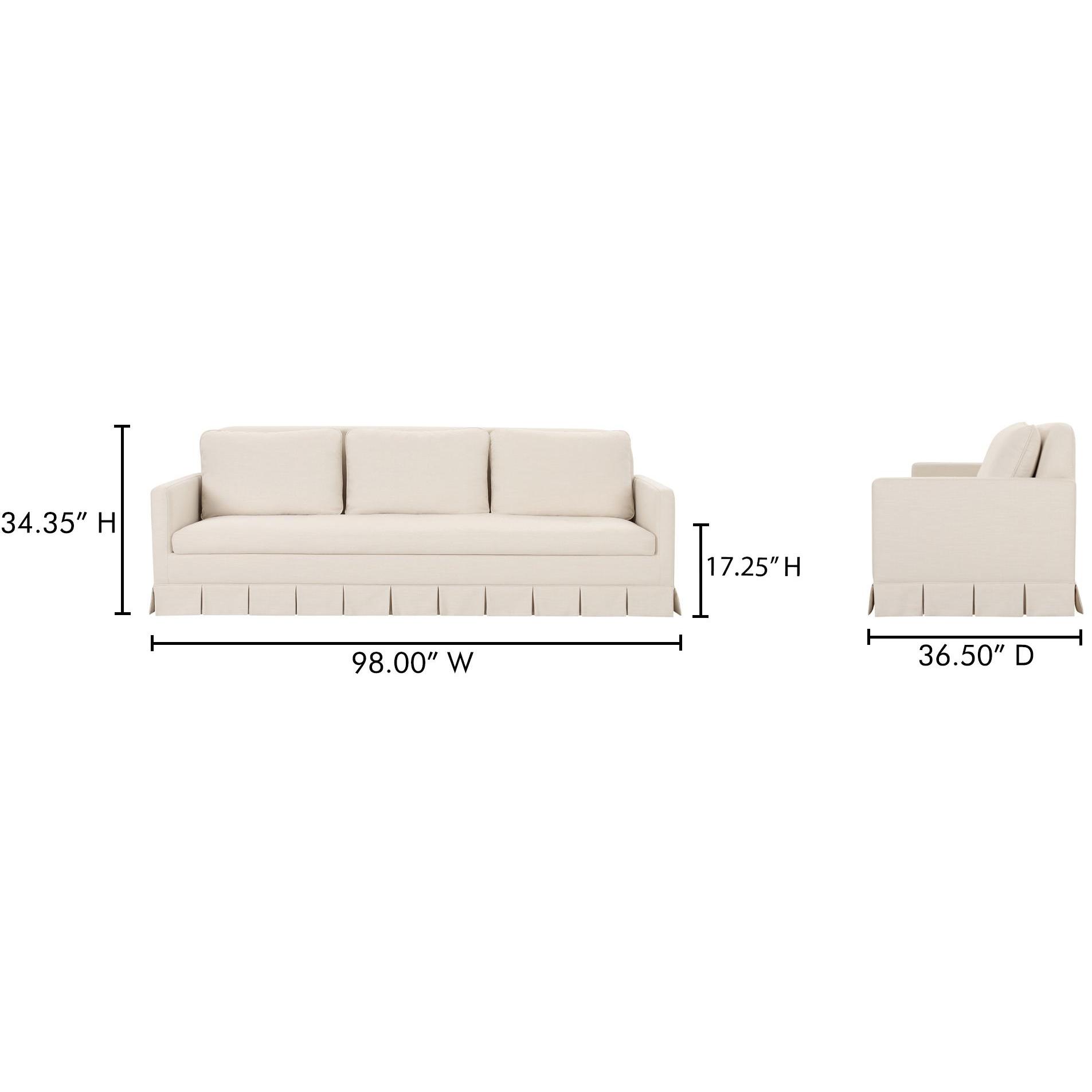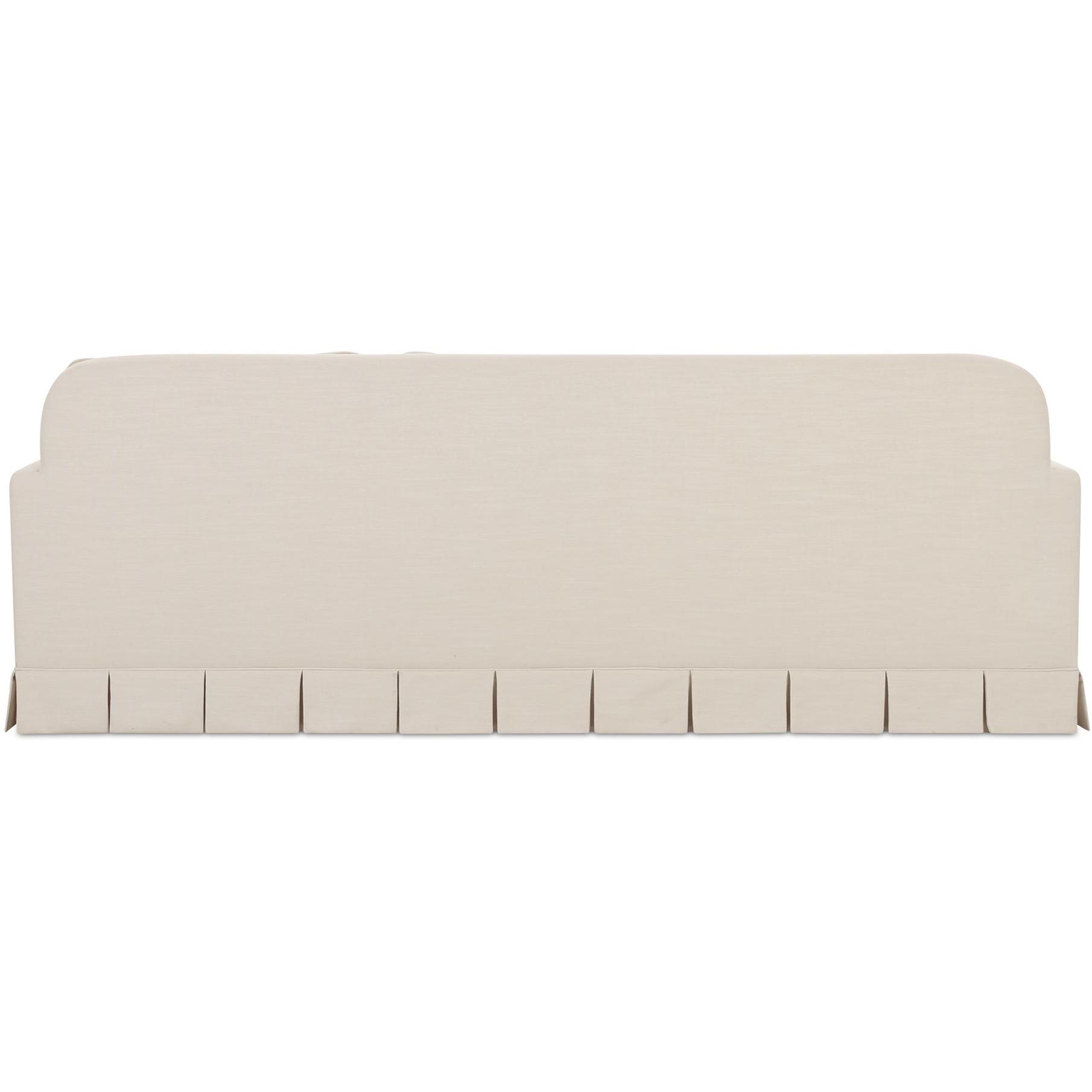 - Box pleat skirt detail, minimal track arm. Back features soft rounded corners