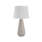 For a beautiful lighting statement in any room, bring home the Pera table lamp. Perfect for displaying on its own or as a pair, its simple yet sophisticated design will effortlessly elevate any decor. Featuring a textured grey and ivory ceramic body, brushed nickel-plated accents and an off-white linen tapered drum shade, a fashionable, functional result is guaranteed. Once you plug in your new lamp and customize the ambiance with a 3-way switch, you’ll quickly understand the impact lighting can have in your space.