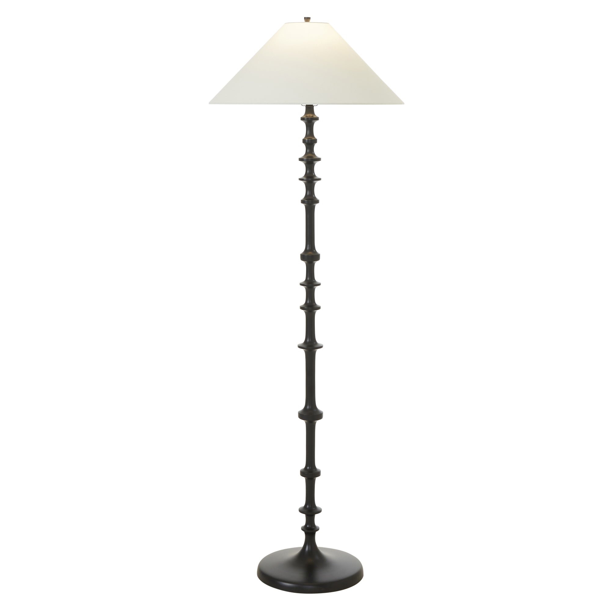 The Petrus floor lamp reinvents a classic silhouette with bold, modern attitude. Its geometric matte-black base stands out effortlessly, while an off-white linen drum shade softens the glow. Twist the dimmable dial to set the mood and watch how this sculptural piece brings instant style and atmosphere to any space.