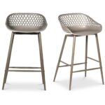 Patio perfection. With a curved seat, the Piazza counter stool is like a basket of comfort for summertime bliss. A diamond mesh back made with durable polypropylene and sleek tapered legs provide this stool’s contemporary charisma, while a built-in footrest keeps things breezy. Available in two colors, pair this counter stool with others from the Piazza collection for a true outdoor oasis.