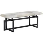 This stunning bench will bring style and comfort to transitional spaces. Features a hand-stitched genuine brown cowhide seat with a sleek black iron frame. Also available in grey, along with a coordinating ottoman. As cowhide is a natural material, organic markings on the animal may still be visible and there may be apparent differences in hair length, colour, and pattern. No two pieces are alike and images on site may not capture these qualities precisely. Made in India. With refined craftsmanship, this design was brought to life by skilled local artisans. By nature, these materials develop unique imperfections such as fissures, markings and colour variations for a truly one-of-a-kind piece.