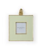 Pistachio enamel wall frame trimmed in textured gold, holds 4 x 4 photo.