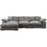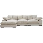 A fusion of comfort and elegance with clean lines and plush cushions, the Plunge sectional is masterfully crafted to maximize space and provide unparalleled relaxation. Its versatile flip chaise feature allows a left or right-side orientation that effortlessly adapts to create a sanctuary of style and repose, while its improved channeling and filling distribution ensures soft landings and comfort for years to come.
