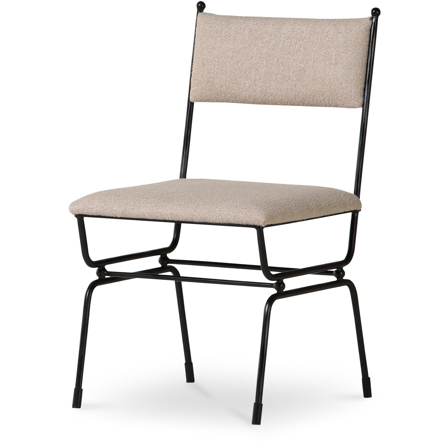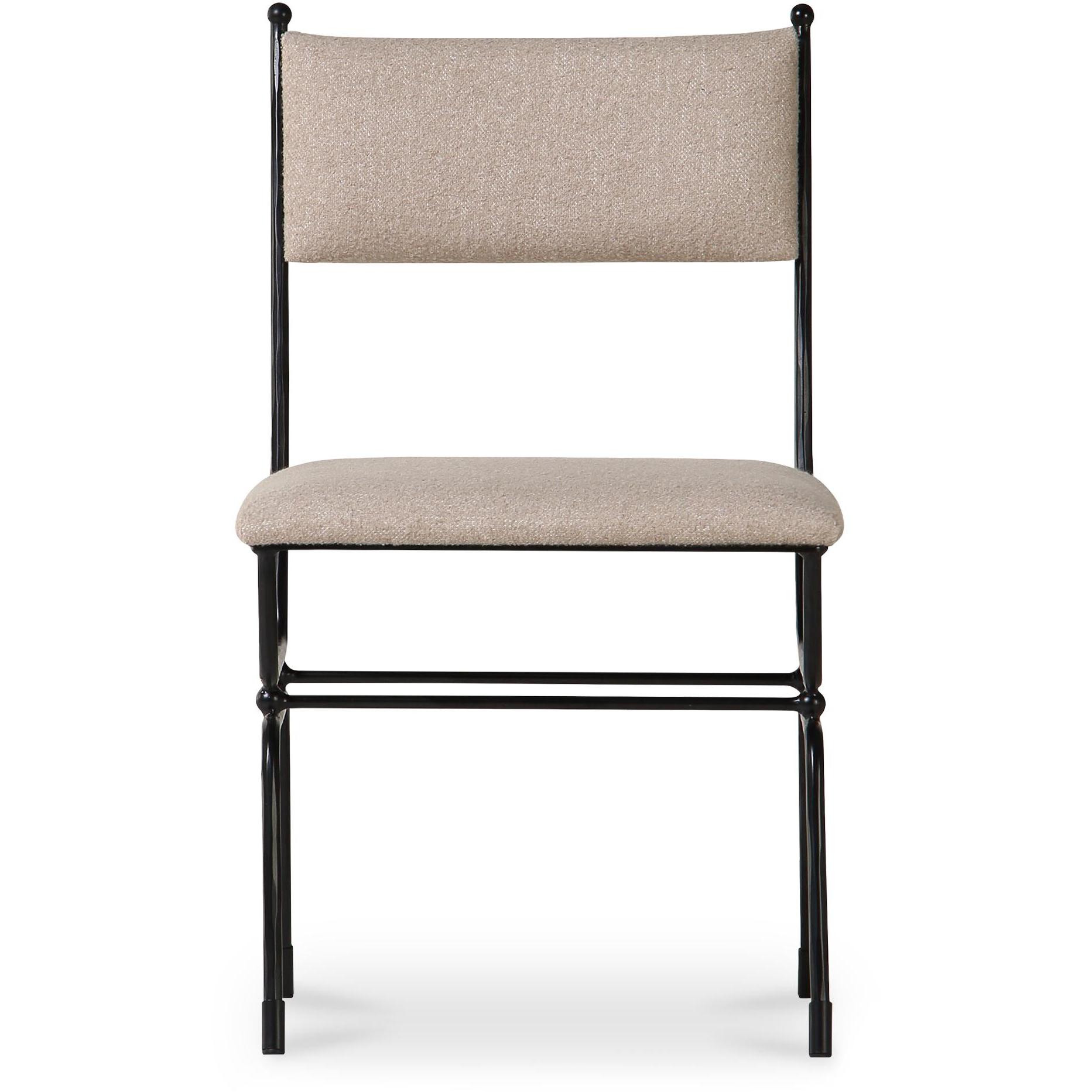 The Posta dining chair is inspired by the historical elegance of Italy’s Posta Vecchia hotel, seamlessly marrying vintage allure with modern comfort. Its robust hammered metal frame underscores distinctive finial details on the back and base, echoing the Italian locale’s enchanting spirit. Upholstered with soft fabric and featuring a curved back, this piece adds plush comfort with a touch of Italian finesse.