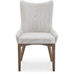 Crafted from resilient rubberwood, the Potter dining chair features a high, curved back that gently contours around you and a generously padded seat upholstered in Performance fabric for enduring beauty and ease. This piece marries the tranquil pleasure of soft, supportive seating with the stately appeal of tradition.