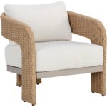 The geometric curves of the Pylos Lounge Chair will effortlessly stand out in any outdoor area. Black twisted wicker wraps around an aluminum frame for a defined, textured look. Soft cushioning in our louis cream outdoor boucle performance fabric ties the look together.