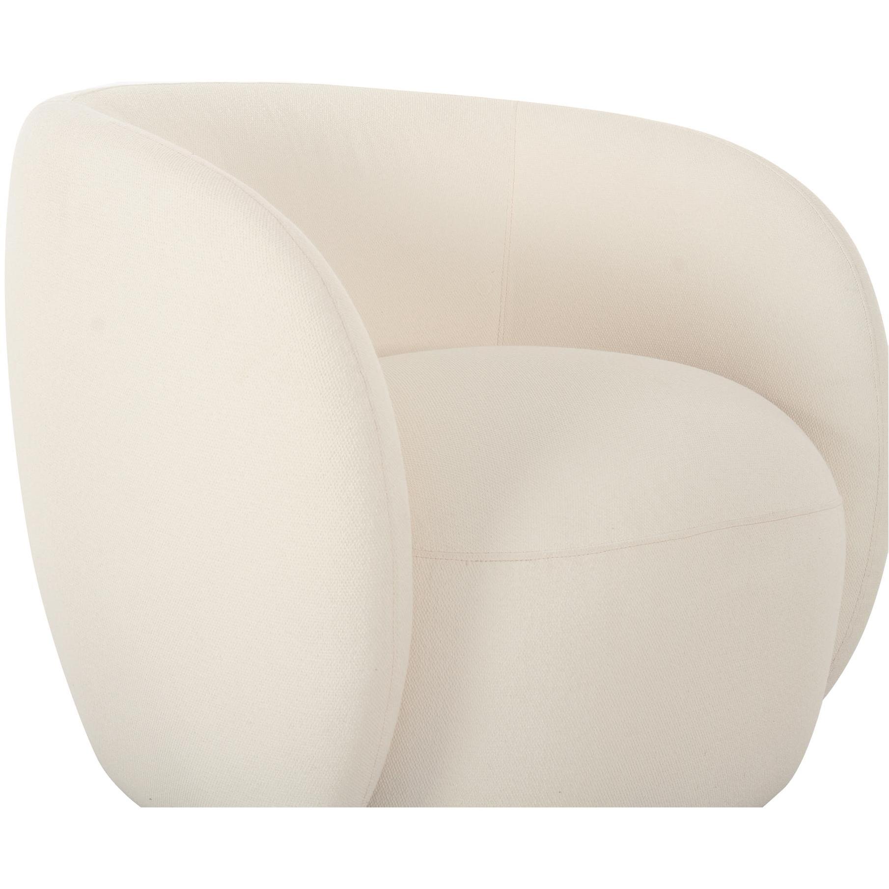 The Rae accent chair’s rounded silhouette and gently curved back match style with comfort. Fully upholstered in an all-weather, water-resistant fabric, it ensures durability without compromising aesthetic appeal, embracing the outdoors with indoor refinement.