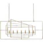 With an unconventional design that takes inspiration from candelabras, this modern chandelier will illuminate any space with style. Features a geometrical metal frame in a champagne gold finish.