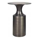 Burnished with a polished finish, the Rassa accent table features Art Deco references with a slender column base that dips to flare out to a metallic, reflective tabletop. The slim form makes it easy to move around and flex to changing needs, while the base features a felt disc to prevent scuffing the floor. Available in polished silver, gold and zinc, this aluminum table’s magnetic charm makes a statement in any space.