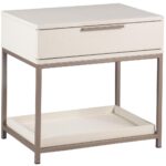 A modern nightstand designed to add a beautiful touch to the bedroom. Crafted from charcoal grey oak veneer with a soft closing drawer and shelf for added storage. Brushed gold iron hardware completes the look. As wood is an organic, porous material, these pieces will contain natural variation of texture and may also exhibit fine indentations and cracks. Wood pieces will also display a disparity of colour and grain, and visible knots and burls that add to the character of each piece.
