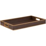 This chic tray features a brown faux crocodile finish accented with gold edging, blending bold texture with refined elegance for a sophisticated statement piece. Designed by Shayla Copas.