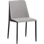 This modern dining chair offers a minimalist silhouette perfect for small urban settings. Features a comfortable seat in armour grey fabric with a contrasting seat back and steel legs upholstered legs in dark slate fabric.