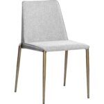 This modern, stackable dining chair offers a minimalist silhouette perfect for small urban settings. Features a comfortable seat in dillon stratus faux leather with a contrasting seat back in dillon black faux leather. Completed with powder coated steel legs in black. Also available in belfast heather grey with bravo metal and belfast oatmeal with bravo cognac. Handle With Care: This design has been crafted with faux leather. Faux leather is manufactured to reflect the natural characteristics of leather; as such, colour variations, markings wrinkles, grooves, and light scratches are appreciated characteristics. No two pieces will be alike.