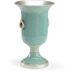 Antique mint green porcelain trophy shaped vase with antique silver accents, designed by Bradshaw Orrell.