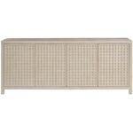 The River Rock Credenza features the collection’s signature latticework design, adding a touch of architectural interest to your space. Finished in a light and airy River Rock, its ample storage and clean lines offer both functionality and style. This credenza serves as a sophisticated statement piece, perfect for dining rooms, living areas, or entryways.