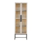 The River Rock Display Cabinet combines modern lines with functional elegance. Finished in a light and airy River Rock, its glass doors and adjustable wood shelves offer a stylish way to showcase your favorite items. The sleek metal base adds an industrial touch, creating a versatile piece that complements any living or dining space with its blend of open and closed storage.