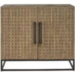 The River Rock Hall Chest combines architectural detail with practical storage. Featuring the collection’s signature latticework design and a light and airy River Rock finish, its two doors open to reveal ample space for organizing essentials. The sleek metal base adds a contemporary touch, making this chest a stylish and functional addition to any entryway or hallway.