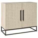 The River Rock Hall Chest combines architectural detail with practical storage. Featuring the collection’s signature latticework design and a light and airy River Rock finish, its two doors open to reveal ample space for organizing essentials. The sleek metal base adds a contemporary touch, making this chest a stylish and functional addition to any entryway or hallway.