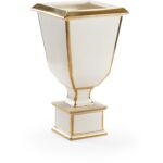 Classical decorative urn in white with metallic gold accents. For decorative use only.