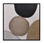 A textured painting in a neutral palette with four bold circular shapes. Features a black wood frame with a one-inch canvas. Each artwork is hand-painted and will feature slight variations that make every piece unique.