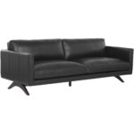 A stylish, retro-inspired sofa. The masculine design features a comfortable seat in shalimar tobacco leather with dark brown solid oak wood legs.