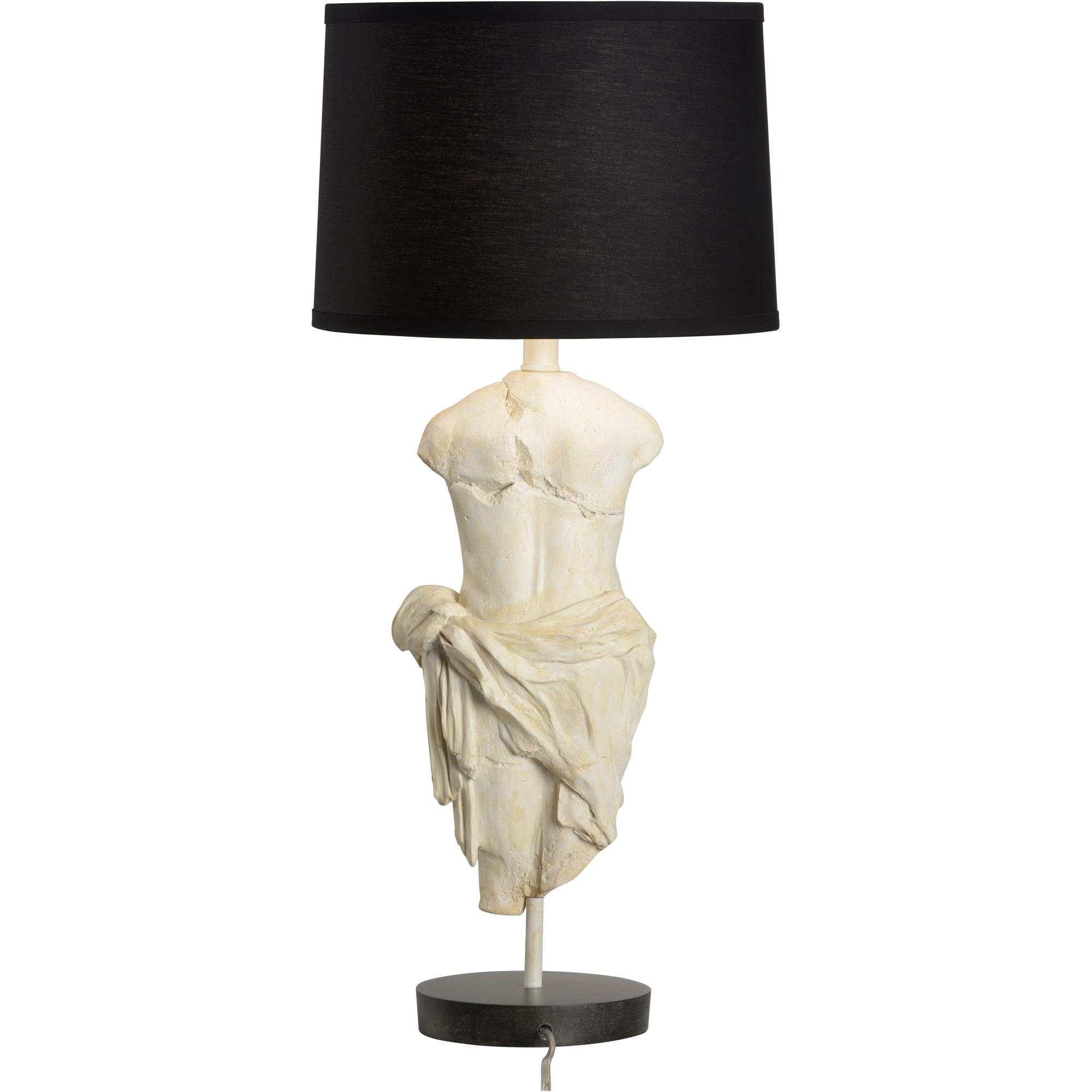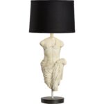 Inspired by the early Roman dynasties, this unique table lamp features a hand carved male statue. The antique stone finish and quality craftmanship provide a stunning piece of art perfect for a study, library or seating area in a traditional decor.