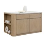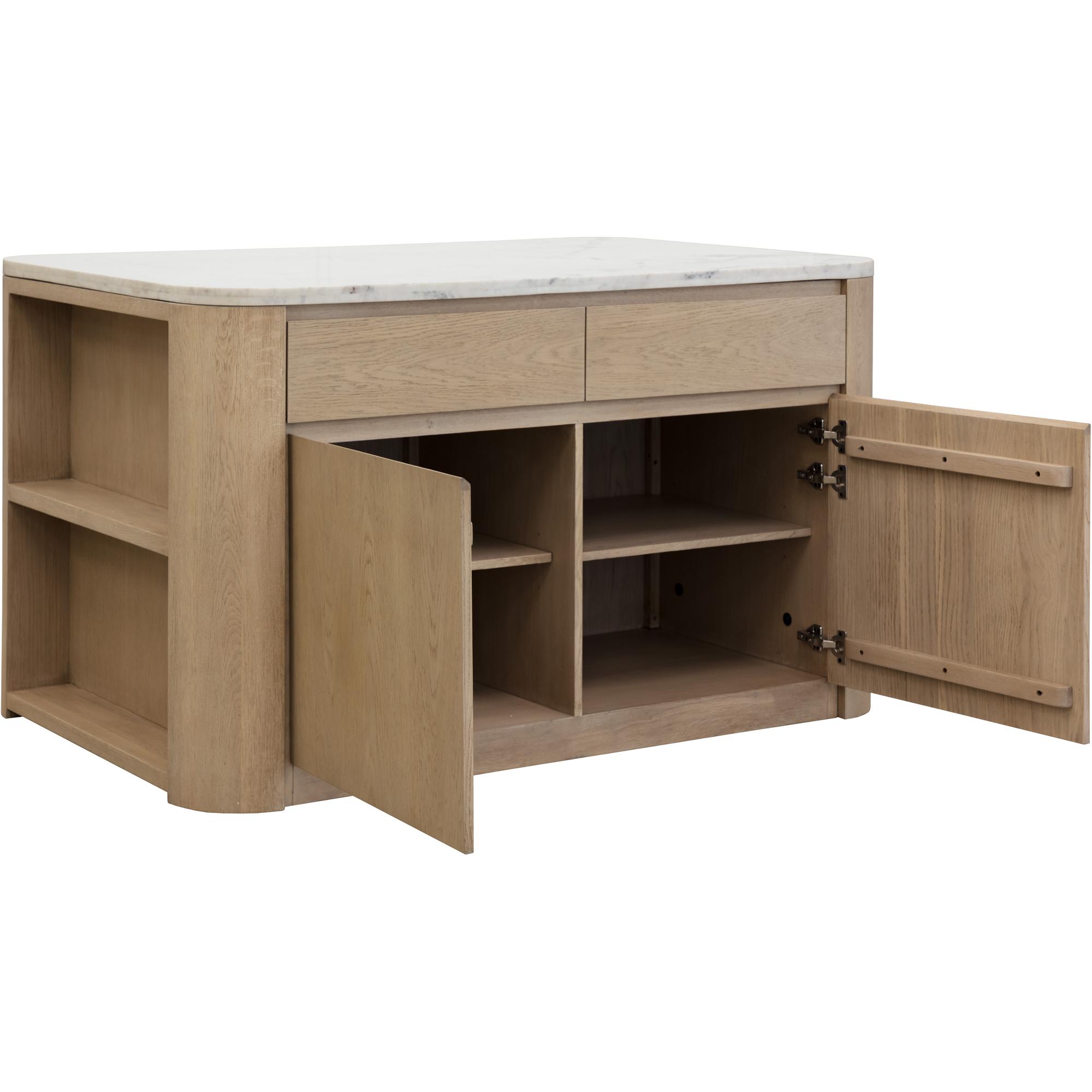 Designed to elevate everyday rituals, the Romilly Kitchen Island pairs a rounded rectangular silhouette with a Banswara marble top and warm oak wood base. Thoughtful open shelving and discreet soft-close drawers make it as practical as it is poised. Whether used in the kitchen or reimagined as a workspace, Romilly adapts effortlessly across any setting.