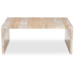 The bold simplicity of the waterfall design speaks volumes with the Rosa coffee table’s versatility. The table is singularly impactful and crafted from beautiful sections of different types of neutral-toned marble with a generous scale and thickness to create a substantial look. This piece commands attention as a statement of natural elegance.