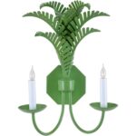 Designed for Wildwood by Meg Braff Designs, Royal Palm Sconce is a tole two arm sconce with palm frond details and an octagonal back plate. This sconce was inspired by the foliage of Palm Beach to complement your coastal decor.