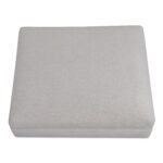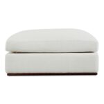 The Rue ottoman features a generous 70% feather-fill topper within its seat. Its elegant silhouette is highlighted by a rubber wood base, creating a sleek floating appearance, all supported by subtle wooden legs. Designed with extreme comfort in mind, this ottoman embodies easy, neutral styling.