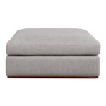 The Rue ottoman features a generous 70% feather-fill topper within its seat. Its elegant silhouette is highlighted by a rubber wood base, creating a sleek floating appearance, all supported by subtle wooden legs. Designed with extreme comfort in mind, this ottoman embodies easy, neutral styling.