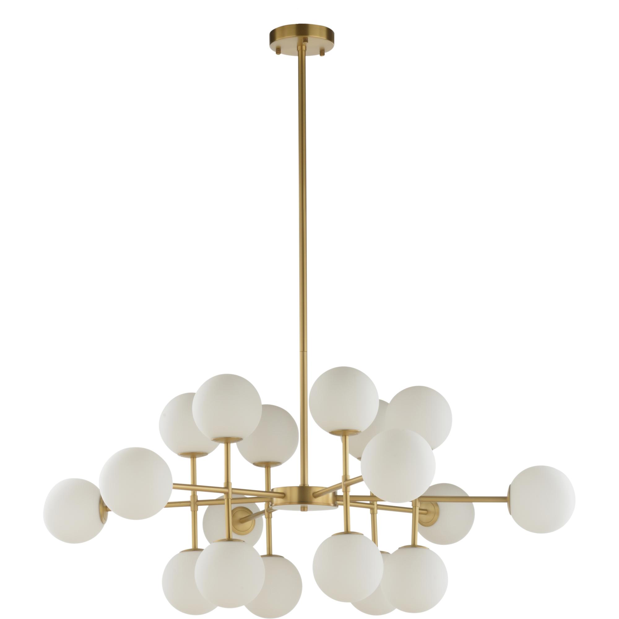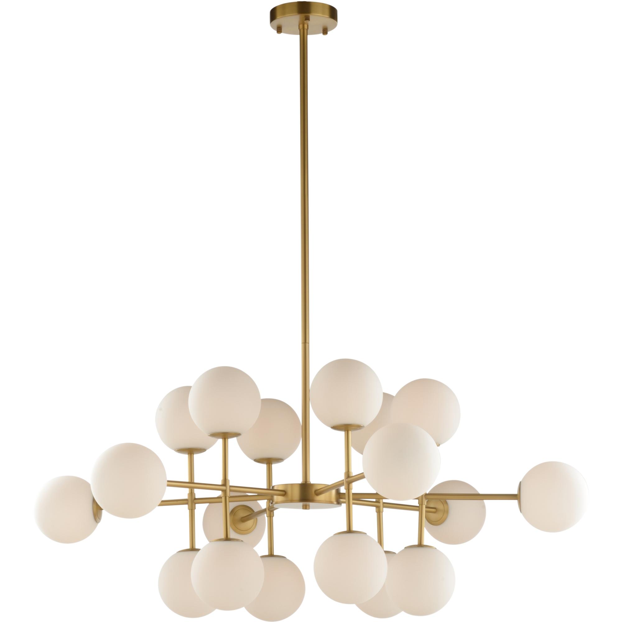 The Rue Saint-Anne Chandelier is a stunning centerpiece that combines mid-century modern design with a touch of vintage sophistication. Featuring an array of milk glass globes branching out from an antique brass frame, this chandelier radiates a soft, warm light that adds a luxurious glow to any room. Its geometric arrangement of globes creates a striking visual impact, making it the perfect statement piece for living spaces, dining rooms, or grand entryways. Comes with 1′, 2′ and 3′ rods.