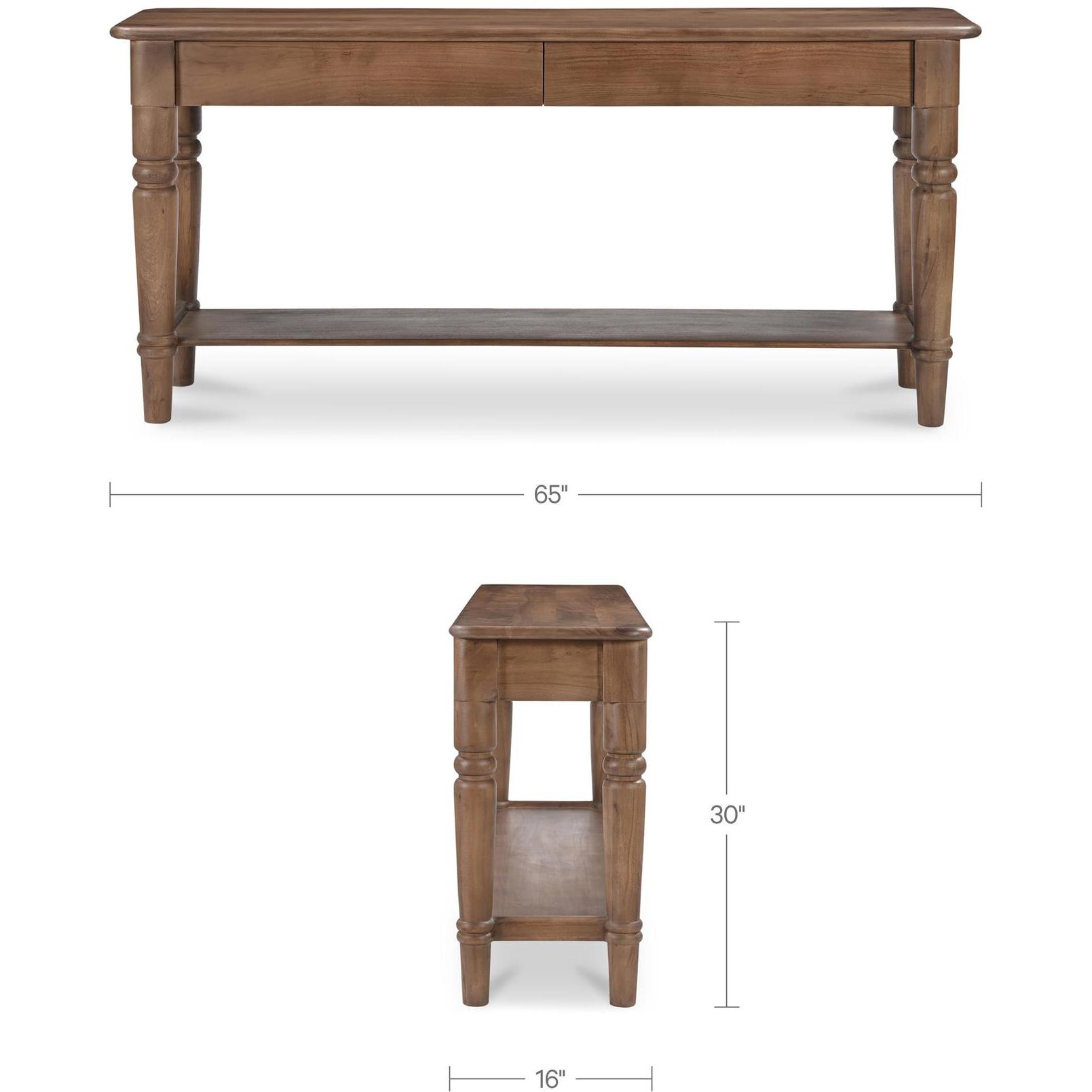 The Russet console table features beautifully turned legs, intricately carved details, and a mid-tone brown finish that fits seamlessly into traditional and transitional homes. Adding to its charm are two large horizontal drawers for additional storage with a shelf underneath. These are complemented by an overhanging tabletop that enhances its classic aesthetic–a timeless centerpiece, enriching the dining experience with style and functionality.