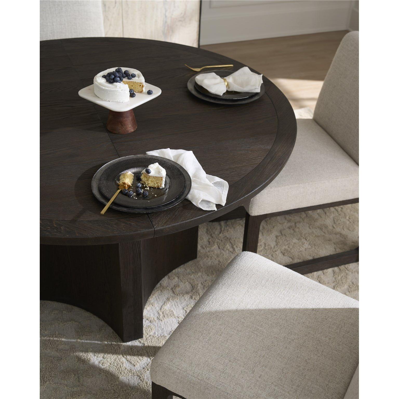 The Sable Round Dining Table creates an intimate and inviting dining experience. Its rich Sable finish enhances the classic round silhouette, fostering a warm and welcoming atmosphere for gatherings and meals.