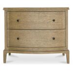 The Sadie nightstand’s gentle curves and wire-brushed oak finish embrace modern traditionalism. The artfully designed overhang with rounded edges and curved front offers a soothing visual rhythm. Two spacious drawers provide ample storage, balancing form and function.
