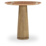 - Expressive Marble: The Sage Cafe Table combines a round Cosmos marble top with a mid-tone brown oak pedestal base, creating a complementary blend of natural materials.