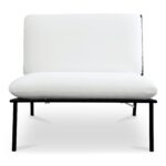 The Salma outdoor accent chair’s armless design includes quick-dry foam cushions covered in 100% Olefin fabric that resists fading and includes ties for stability. It features a durable stainless-steel frame with elegant crisscross detailing. This piece combines superior comfort with exceptional weather resilience, making it perfect for outdoor use.