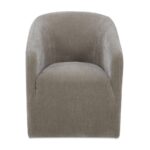 Looks polished and rolls with it. Sandy brings ease to the table. With a curved back, comfy seat, and smooth-rolling casters, it’s built for long meals, quick coffees, and anything in between. Fully wrapped in soft fabric upholstery, the silhouette feels seamless and considered–for diners who like to drift.