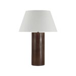 Combining the drama of warm walnut wood and the purity of ivory linen, this table lamp balances dark and light to create the kind of visual interest that suits both contemporary and transitional interiors. Featured on a console, buffet or end table, its enduring style will leave a lasting impression while elevating any space.