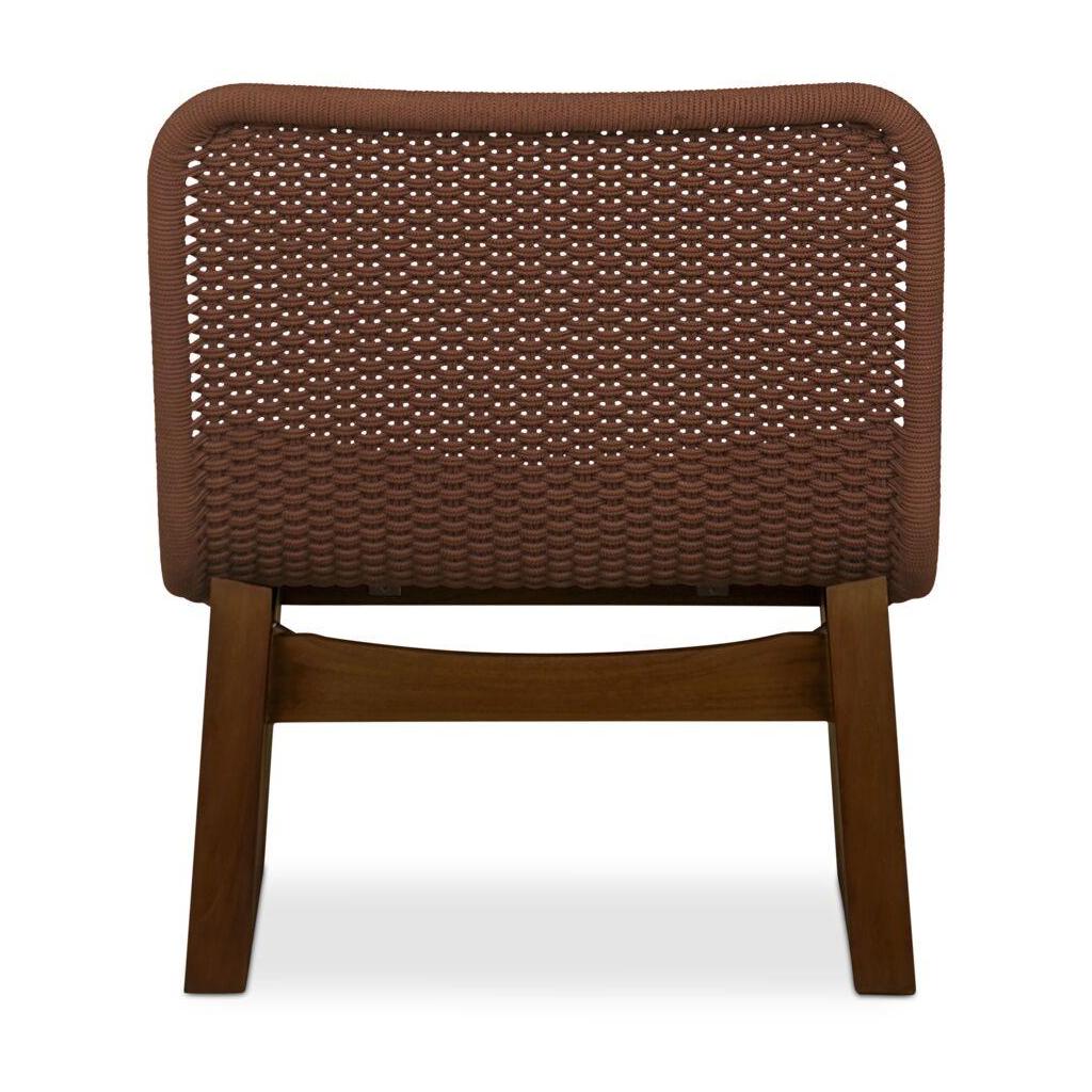 - Solid Teak Legs: Sturdy teak legs with a toasted finish provide a warm, natural complement to the tonal wicker.