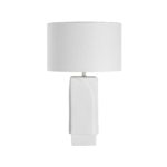 Fresh from the drawing board and set to make a sculptural statement in any space, Canadian interior stylist and designer, Arren Williams introduces the Scavo table lamp. Gracing the room with the subtle beauty of fine ceramics, this lamp boasts a matte off-white textured finish on its statuesque base for a stone-like effect. Adding a touch of shine is a champagne plated fitting that peeks out from under a dramatic drum shade in off-white linen topping off the modern base with classic charm. Dimmable, ambient lighting is a wrap when you use the Scavo as the perfect bedroom table lamp or living room table lamp.