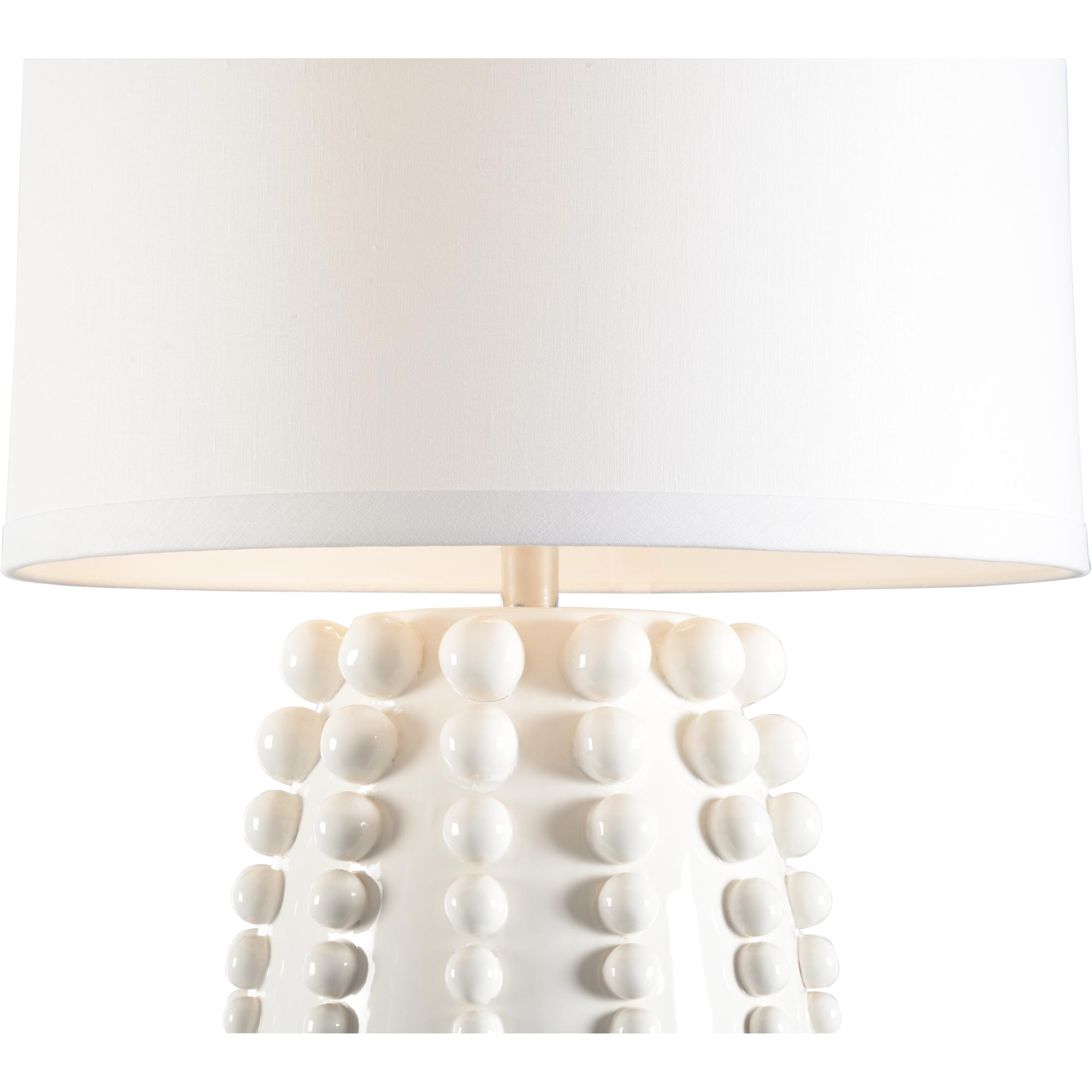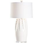 Create an eye-catching display with the Sea Urchin Lamp as the focal point. A white ceramic glaze finish, large silhouette with beaded details and an acrylic base brings a tasteful coastal feel to your home. Designed by Jamie Merida.