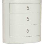 - Finish: Shell: a soft, textured sandblasted white finish. Light champagne decorative ring pulls.