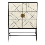 An aesthete’s delight. The Shaws cabinet is a luxurious affair of solid mango wood and ornate bone veneer. Two large doors open up to an abundance of shelving space. Brass details finish off this imposing piece.