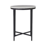 Traditional style gets a modern update in this stunning end table. Crafted from cast aluminum with a matte black finish for a hand-forged look, it has the sturdiness and timeless appeal worthy of holding court in your interior design project. Finished with a Banswara marble top, this accent table will add a touch of sophistication to any home or office.