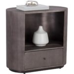 Elevate your bedroom retreat with this intriguing nightstand. A large shelf and drawer provide ample storage. Features a hand-etched and hand-hammered iron frame with an antique brass aluminum finish. Made in India. With refined craftsmanship, this design was brought to life by skilled local artisans. By nature, these materials develop unique imperfections such as fissures, markings and colour variations for a truly one-of-a-kind piece.