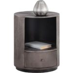 Elevate your bedroom retreat with this intriguing nightstand. A large shelf and drawer provide ample storage. Features a hand-etched and hand-hammered iron frame with a bronzed gunmetal finish. Made in India. With refined craftsmanship, this design was brought to life by skilled local artisans. By nature, these materials develop unique imperfections such as fissures, markings and colour variations for a truly one-of-a-kind piece.