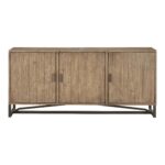 The Sierra Sideboard is a masterful fusion of timeless craftsmanship and rustic design. Its pine frame with reclaimed pine face boards is accented by a stainless-steel base and 3 locking doors with adjustable interior shelves. A sophisticated addition to a stylish dining room.